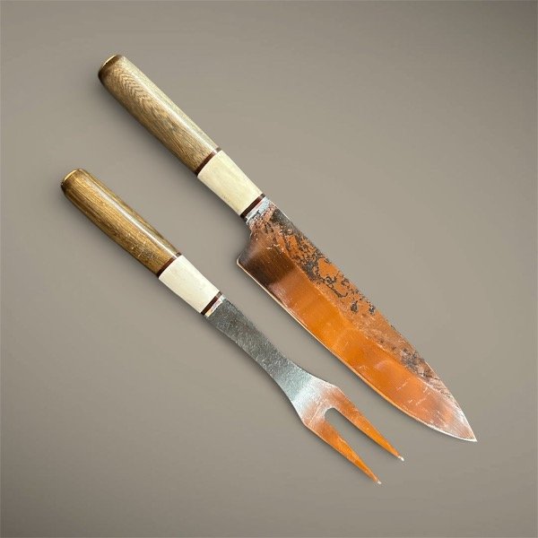 ✔ Incluye cuchillo y tenedor parrillero, perfectamente balanceados para el corte de carnes.