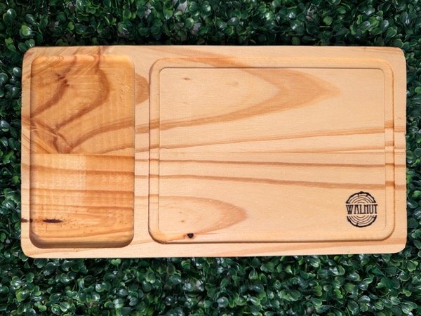 Tabla de pino con sección para ensaladas, práctica y elegante para cortar y servir tus comidas en un solo lugar.